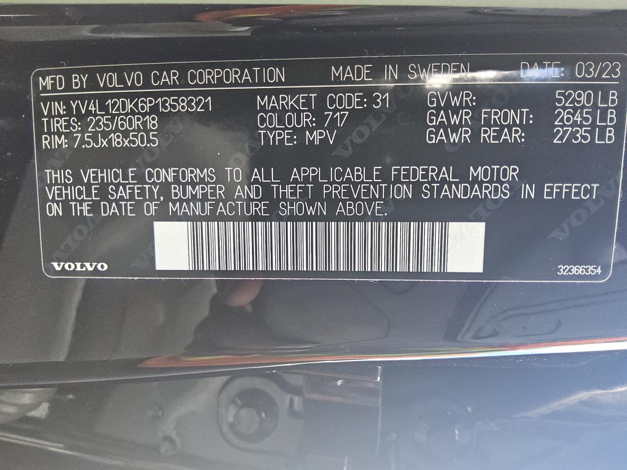 VOLVO XC60 2.0 2023 р.в., (YV4L12DK6P1358321) з США