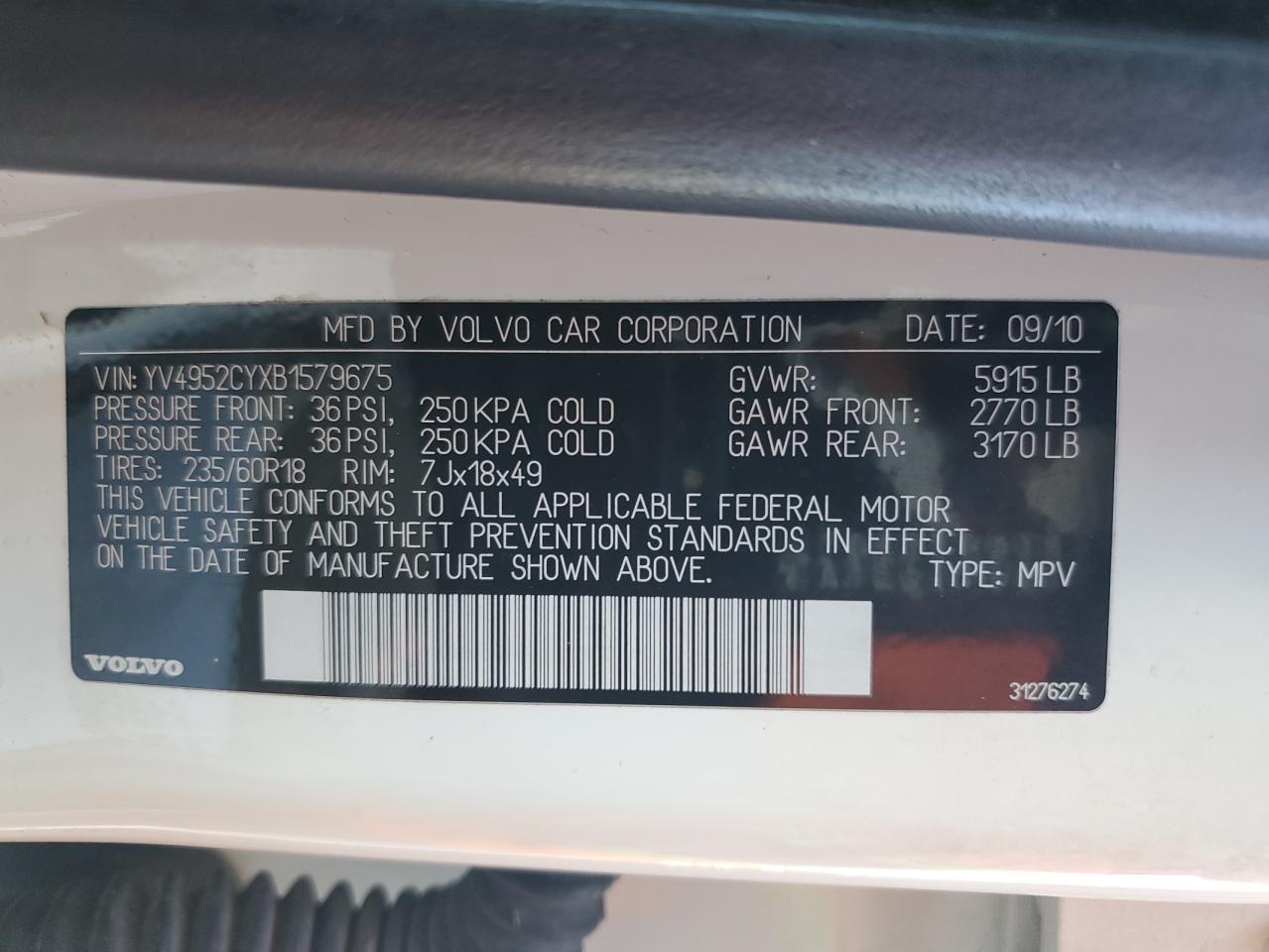 Колір БілийЦиліндри 6VIN YV4952CYXB1579675Стан Заводиться та їде (перевірено)Ушкодження Передня або задня